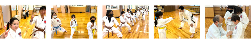 お子様は空手の稽古を通して様々なことを自然と学んでいきます。 基礎体力を向上させていく中で、挨拶、返事などの礼儀作法もしっかり教えます。 目的をしっかり持ち、自分を律し、努力する精神も自然と身に付き、健全なこころとからだを育てます。 また、違う年代の子供達と切磋琢磨していく中で協調性と思いやりの精神も育まれます。稽古は真剣に、 明るく、楽しく、メリハリを持って行われ、お子様に合わせて親切丁寧にご指導致します。